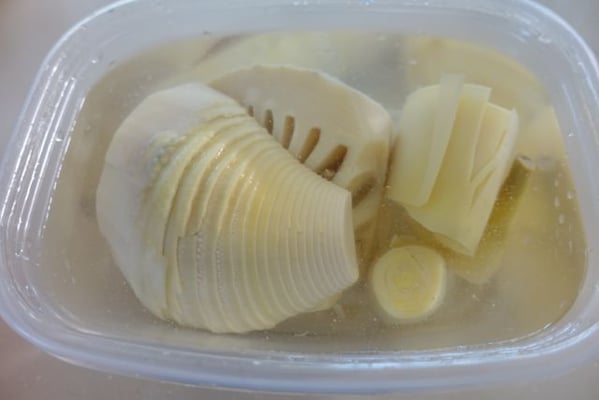 5.皮をむき、水に入れて保存する。