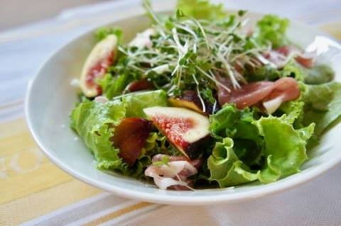イチジク、生ハムを彩り良くのせ、ドレッシングをかける。