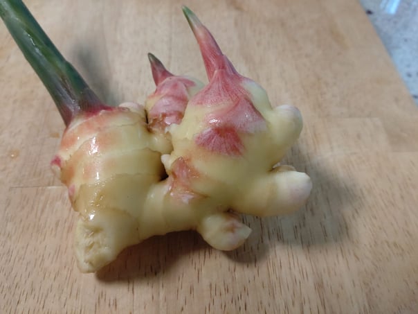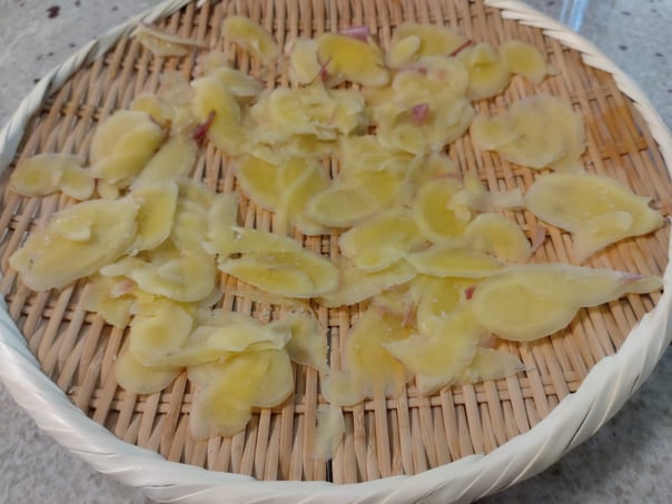 1. 新生姜をきれいに洗い、茶色い汚れている部分があったら取り除く。