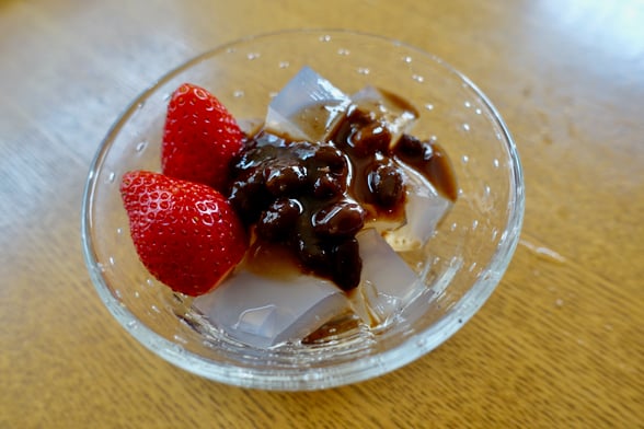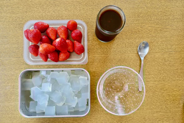 1.鍋に水と寒天を入れ、よく混ぜて溶かす。火にかけ、沸騰後2分したら火を止める。