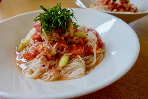 *素麺の水気をしっかり取り除くのがポイント。味が薄まらず美味しく仕上がります。