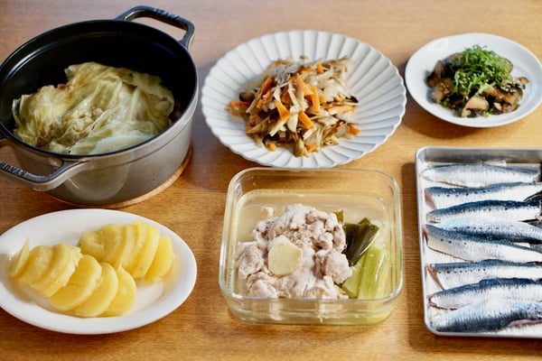 ・肉、魚の下ごしらえ→作り置き、メイン料理(1品)